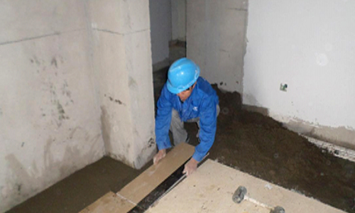 (1)找水平、拉線:在素混凝土找平層上貼水平灰餅,按地面彈線拉雙向水平線找中找方,并找出拼花板的位置,施工前一天灑水,濕潤基層。